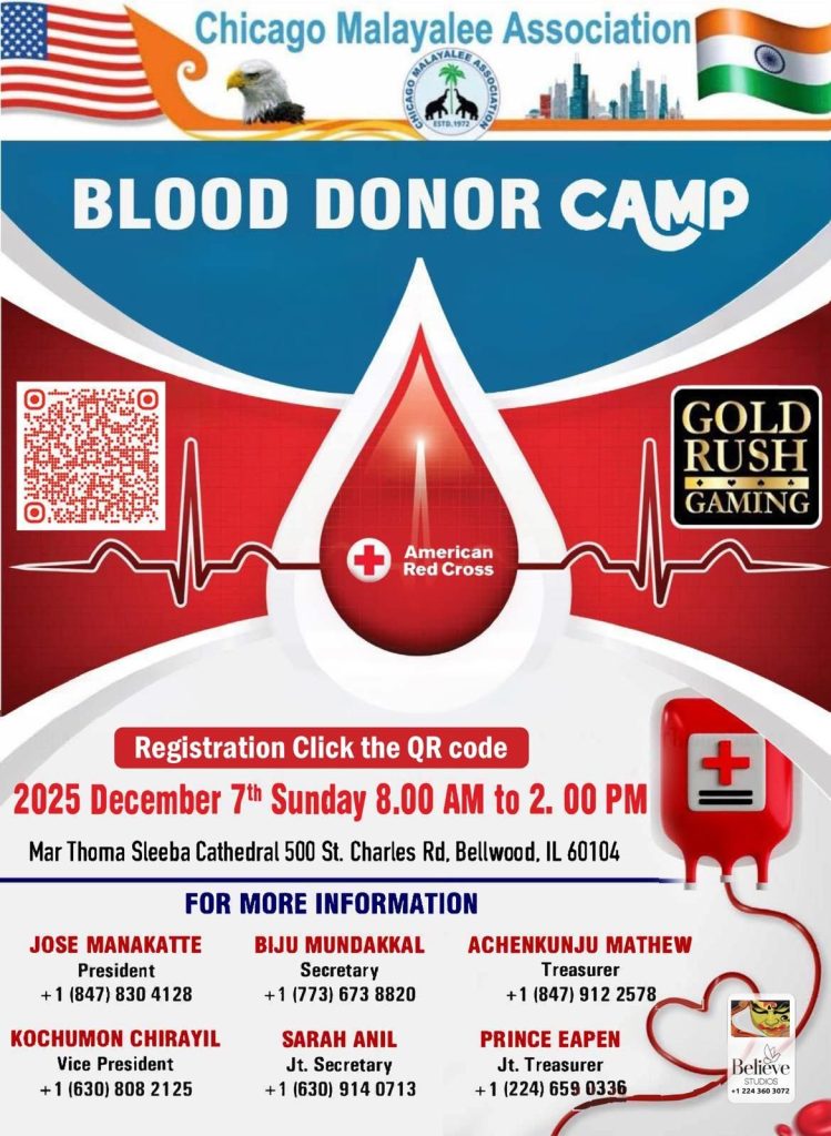 Chicago Malayalee Association – Blood Donor Camp 2025